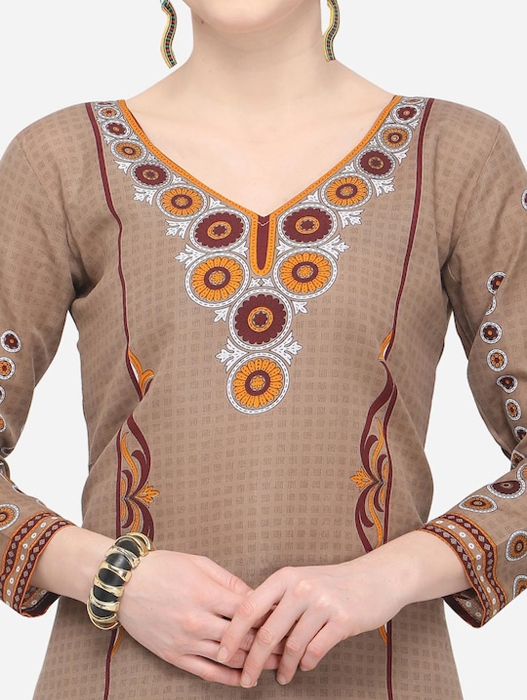 Kurta fabric length: 2.5 metresBottom fabric length: 2.5 metresDupatta length: 2.25 metres (approx.)