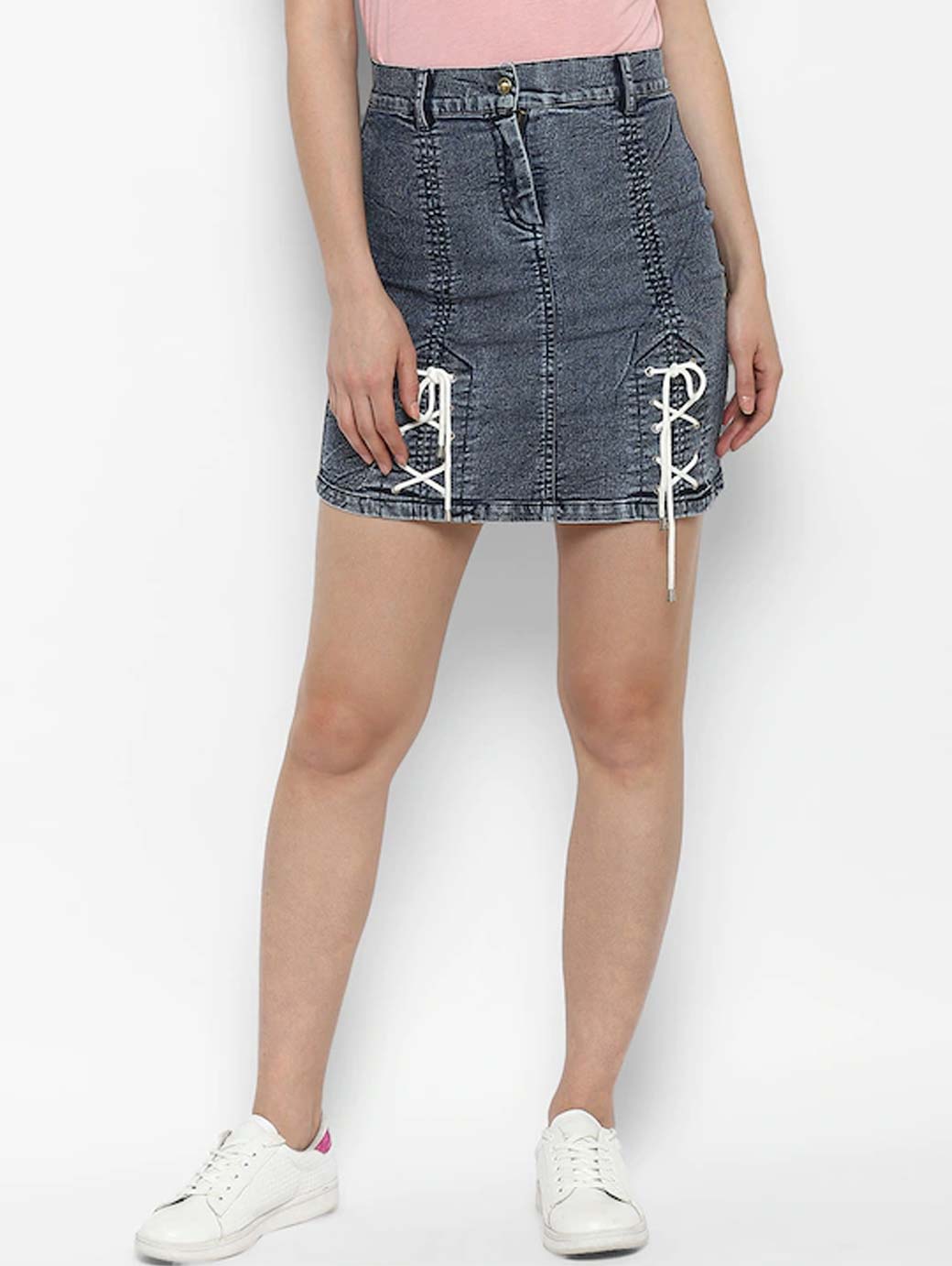 Women Blue washed mini A-line denim skirt