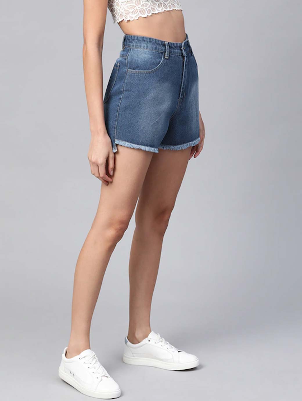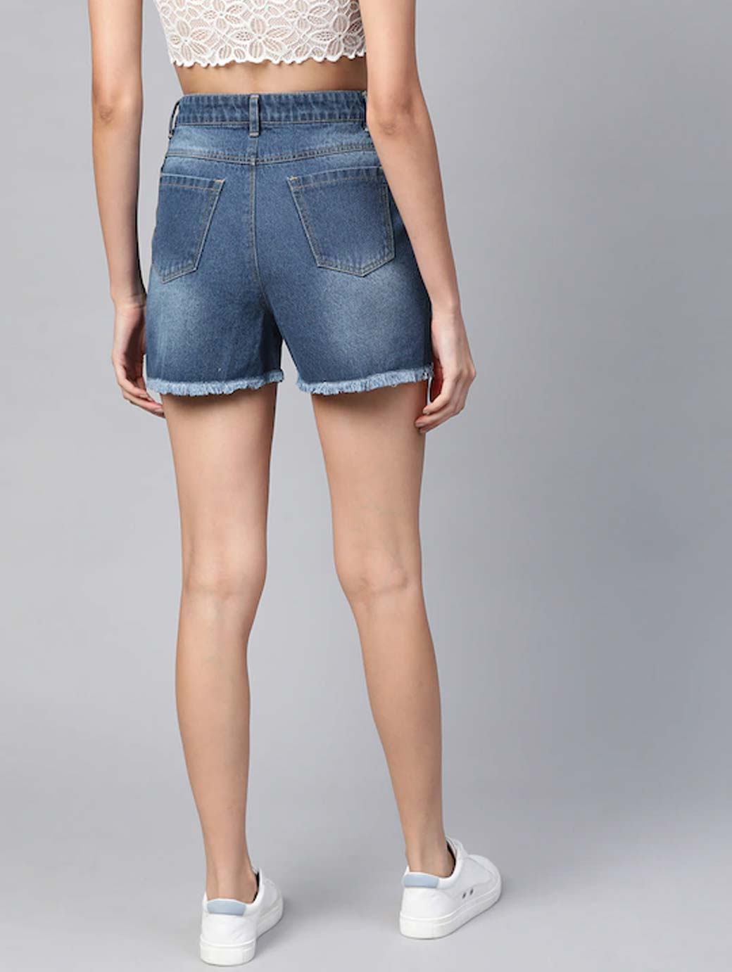 Women Blue Washed High-Rise Pure Cotton Denim Shorts
